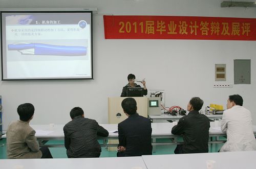 机械系张城同学的毕设作品《基于多轴机床战斗机模型的数控加工》 随着毕业的临近,各系毕业设计工作进入收获阶段。4月8日下午,我院财会系、机械工程系分别举办了毕业设计总结大会与毕业设计作品展评会。