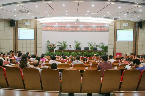 6月22日下午,我院2010-2011学年部门考核大会在行政楼一楼多功能厅举行。院党委成员,各系(部)、处室中层干部及部分教师代表参加了大会。会议由丁金昌院长主持。
