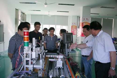 在我院院长丁金昌、副院长王向红的陪同下,各位专家首先实地考察了我院机械系、电气系的研发中心、实验室和实训基地。我院先进的设备以及引入真实企业在校内共建产学研基地的校企合作模式给专家留下了深刻的印象。