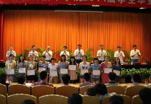 院党委副书记倪集崇宣读了2010-2011学年国家奖学金获得者、省级优秀毕业生名单。陈光天书记等院领导一一为国家奖学金获得者以及获得“省级优秀毕业生”、“院级优秀毕业生”称号的同学颁发了荣誉证书。