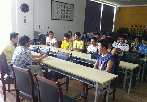 与暑期社会实践学生座谈交流 近期,学院副院长夏晓军、学生处副处长苏跃飞、团委副书记吴冰等一行人分别来到齐鲁证券、亚龙科技集团有限公司、温州科汇进出口有限公司等7家企业开展2011年度暑期社会实践活动督察工作。