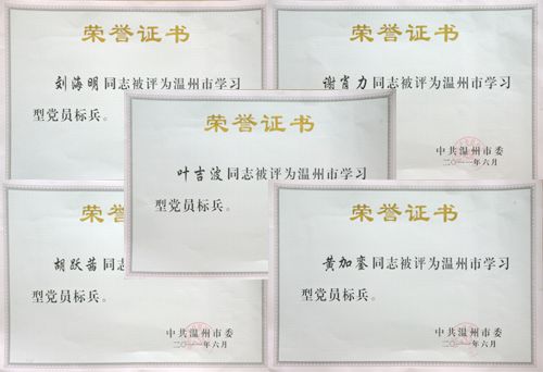 为认真贯彻落实党的十七大和十七届四中、五中全会精神,深入推进学习型党组织创建,充分发挥先进典型的示范引领作用,日前,中共温州市委命名表彰了市级“学习型领导班子”、“先进学习型党组织”、“学习型党员标兵”,我院荣获温州市“先进学习型党组织”称号,我院叶吉波、黄加銮、谢肖力、刘海明、胡跃茜等5位老师荣获温州市“学习型党员标兵”。