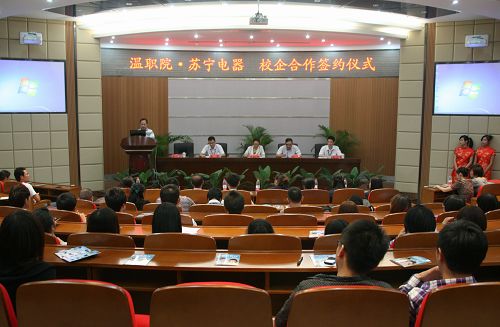随后,王向红副院长和温州苏宁大区孙辉总经理代表双方在“苏宁班”合作办学和实习合作两份协议书上签字。