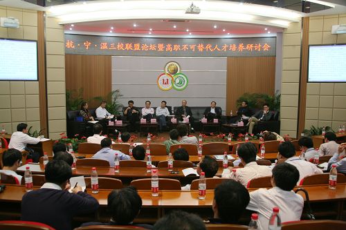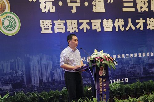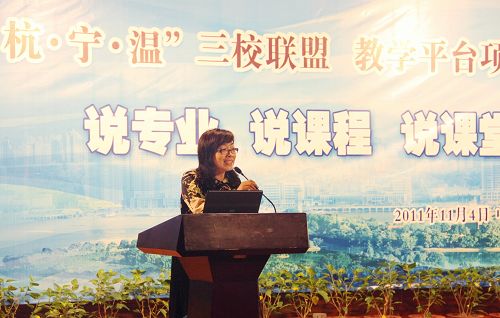 学院副院长王向红主持三校联盟教学平台项目研讨会 11月4日,“杭•宁•温”三校联盟论坛暨高职不可替代人才培养研讨会在温州举行,这是三校联盟自成立以来的第五次会议。此次论坛以“培养高职不可替代人才”为主题,三校院长围绕高职教育的区域性、职业性和高教性三大属性,探讨高职教育的新理念。