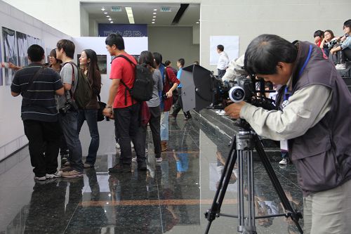 我院师生欣赏摄影作品 11月5日—9日,2011中国•丽水国际摄影文化节暨江浙沪高校摄影联展在丽水市隆重举行,我院参展作品共60幅,集中展示了传媒策划与管理专业的办学成果,获得同行的高度评价。