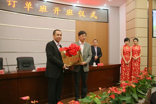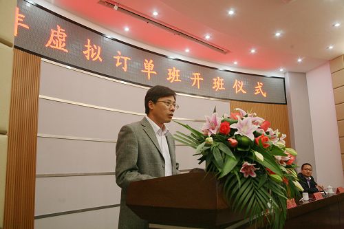 夏晓军副院长在开班仪式上指出,温州宏丰电工合金有限公司是我市即将上市的一家知名高新技术企业,与我院联合“强强合作”一起办班,是学院为区域经济服务的再一次实践,是提高就业质量的有益尝试,对于高职教育的发展、企业用人的规划、学生成长的需求都是很有意义的。夏晓军副院长希望宏丰虚拟订单班的60位同学珍惜机会,尽快适应学生角色与员工角色的互变,一边要刻苦学习理论知识,一边要不断实践,充分利用“合作平台”进行职业素质的培养与职业能力的训练,为自己的职业生涯奠定坚实的基础。他还希望参加订单班教学与指导的老师以及企业工程技术人员要提高责任意识,精心准备,认真指导,高质量完成各项规定任务,同时希望合作双方着眼长远,坦诚合作,办出“宏丰虚拟订单班”的亮点和特色,使学生、企业和学校都能受益。