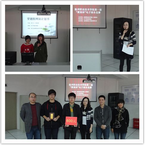经过前期的选拔,共有9组选手进入总决赛,在王璋老师热烈的致辞中比赛正式开始。此次电子商务竞赛主要通过PPT讲解项目和现场答辩两个环节决出胜负。在PPT讲解中选手项目形式多样,包括购物网、手工制作项目、汽车装饰、网上营销、学习网、节能环保购物、民族风情、文化,其中,第二组选手的泽碧缇高级定制项目以一种手工形式来制作各种饰品,华丽的图片展示加上选手绘声绘色的讲解吸引了在场所有观众的眼球,第五组选手学客网项目以学习为主体的一个网站,由于切合时代气息加上在答辩环节中默契的配合最终获得了评委老师的青睐夺得冠军。