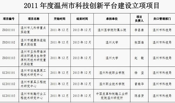近日,温州市科技局发文下达了《关于下达2011年度温州市科技创新平台建设立项和培育计划的通知》(温市科综[2011]16号),我院申报的“温州市家具工程技术研究中心”(项目编号GC201102)被列入2011年度温州市科技创新平台建设立项项目。这是继我院获取浙江省重大科技创新服务平台后,在“工程技术中心”领域的一大突破。