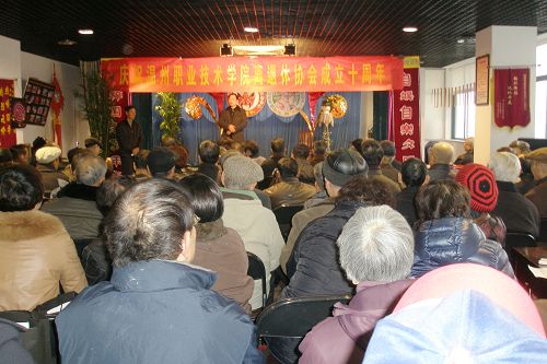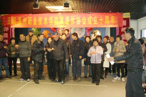 “贴鼻子” 沐浴着辞旧迎新的喜庆,满载着学院领导的祝福,为庆祝离退休协会成立十周年,我院于2011年12月27日下午组织了离退休老同志在市人事局活动中心举行迎新游园活动。院党委副书记倪集崇出席活动,并代表学院党政班子向一直以来关心支持学院的改革和发展的老同志们表示衷心的感谢。倪集崇副书记指出,学院领导班子十分关注老同志的生活,随着工资改革的到位,希望老同志的业余文化生活更加丰富多彩,同时祝老同志们健康长寿,阖家幸福、新春愉快。