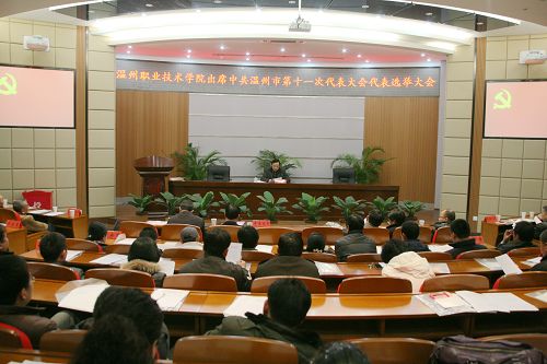 1月4日下午,学院在多功能厅召开党员代表大会,选举我院出席中共温州市第十一次代表大会代表,学院党委领导班子成员及各条战线的党员代表共104人出席会议。大会由党委副书记倪集崇主持。