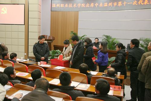 大会审议并通过了学院出席温州市第十一次党代会代表候选人名单、选举办法及大会总监票人和监票人,宣布了大会计票人名单。大会选举采用无记名投票和直接差额选举方式进行,在投票选举过程中,全体与会代表严格按照选举办法有关要求,认真填写选票,投上了自己神圣而庄严的一票。根据大会选举计票结果和大会《选举办法》的规定,李洁、陈光天(按姓氏笔画为序)等两位同志当选为我院出席温州市第十一次党代会代表。