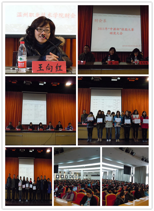 1月4日下午,财会系2011年“中源杯”技能大赛颁奖大会在学术报告厅举行。学院副院长王向红、中源会计师事务所办公室主任潘沁,财会系系主任申屠新飞、党总支书记叶吉波、副主任简家进以及各教研室的相关指导老师出席大会。