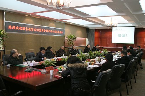 领导合影 2月27日下午,国家教育咨询委员会职业教育办学模式改革组领导莅临我院,就完善职业教育集团化办学体制机制试点、职业教育办学模式改革等工作进行调研。调研组成员包括国家教育咨询委员会职业教育办学模式改革组组长、教育部原副部长张天保,国家教育咨询委员会职业教育办学模式改革组副组长、江苏省教育厅原副厅长周稽裘,中国就业促进会副会长陈宇,甘肃省原副省长路明,教育部职成教司副司长刘占山,中国政法大学研究生工作办公室主任高晓光。浙江省教育厅高教处处长顾玮、副处长韩天琪,温州市教育局局长谢树华、副局长张志宏陪同调研。学院党政领导班子集体出席了座谈会。