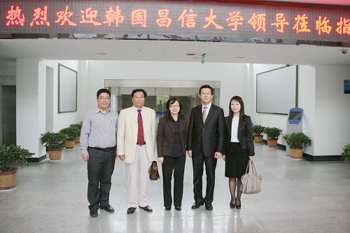 集体合影 4月13日下午,韩国昌信大学副校长姜政默一行来我院参观访问,学院副院长王向红陪同参观。参观过程中,姜政默副校长对我院的办学理念及校内实训基地建设给予了高度赞赏。在随后的会谈中,双方就两校合作的可行性及合作领域进行了深入探讨,皆表达了良好的合作意向。