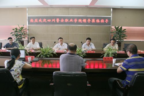 座谈交流 5月18日上午,四川警安职业学院副院长何义兴、宋代奇一行5人来访我院。学院兰玉景副院长热情接待了来访的客人。在实地参观了我院的实训基地后,双方于301会议室展开座谈,就两校在服务地方经济、课程建设、校外实训基地建设等方面的办学经验进行了交流学习。