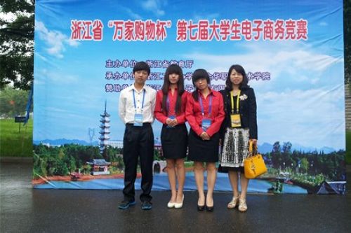 一等奖代表队合影 5月18日-19日,由浙江省教育厅主办的浙江省“万家购物杯”第七届大学生电子商务大赛决赛在金华职业技术学院举行。经过激烈角逐,我院计算机系参赛的两支代表队分别荣获一、二等奖,其中由计算机系教师吴淑英、张白桦带领的罗贝贝、金辉辉、章丽君代表队荣获一等奖,计算机系教师王璋、刘向华带领的李小阳、刘梦、汪永滔代表队荣获二等奖。