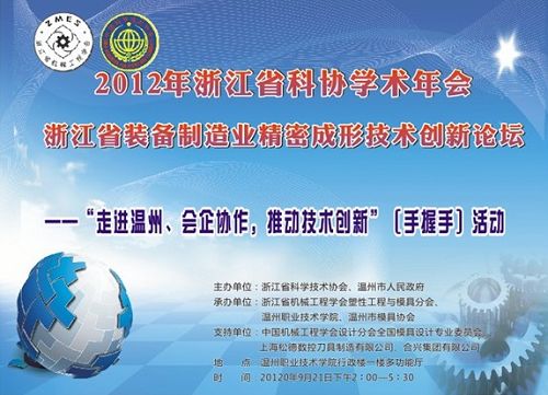 为了促进浙江省温州地区的机械行业技术创新活动,特别是推动推动精密成形技术创新,实现企业成功转型升级,并密切学会、学校与企业的联系与合作,由浙江省科学技术协会、温州市人民政府联合主办、浙江省机械工程学会塑性工程与模具分会、温州职业技术学院、温州市模具协会承办的“浙江省装备制造业精密成形技术创新论坛——走进温州、会企协作,推动精密成形技术创新”(手握手)活动,于2012年9月21日下午在温州职业技术学院隆重召开,该活动是2012年浙江省科协学术年会重点活动之一。