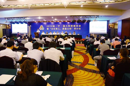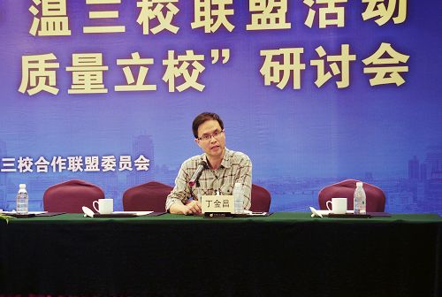 院长丁金昌主持研讨并发表讲话 为深入研究高等院校文化传承创新职能,探讨文化建设与提高高等教育质量的有机结合,发挥高职院校帮助学生增值之功能,推动高职院校的可持续发展,9月27日,2012杭•宁•温三校联盟活动暨“文化育人,质量立校”研讨会隆重举行,国内多所高职院校齐聚宁波,畅谈高职发展的前程问题,共谋高职文化育人、质量立校大计。作为三校联盟的成员院校,由陈光天书记、丁金昌院长、王向红副院长率队,我院部分职能部门负责人和专业负责人以及合作企业代表参加了本次会议。