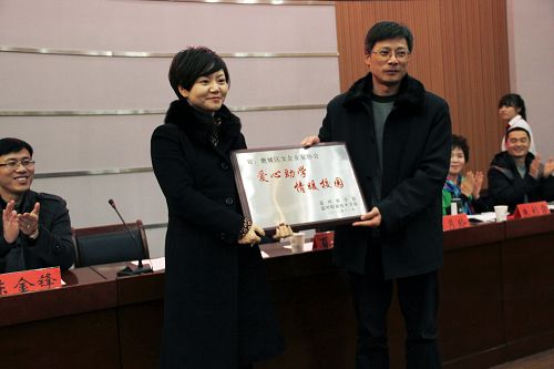 学院党委夏晓军副书记在向鹿城区女企业家协会赠送“金瓯工程”10周年牌匾后,用“十载助学,百年树人,千秋伟业,万世流芳”来赞颂各位女企业家和热心人士对我院十年助学中的贡献与真诚,并勉励受助同学将今天暂时的贫困作为人生难得的宝贵经历,作为成长过程中一笔难得的精神财富,在困难中成长、在磨难中成熟、在挫折中成才。