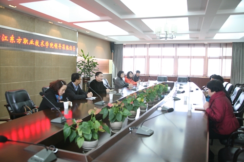 2月22日上午,浙江东方职业技术学院院长戴海东一行6人来访我院,就示范院校建设工作、实训基地建设、财务管理等内容进行考察。丁金昌院长于行政楼301会议室热情接待了戴院长一行。计财处等相关部门负责人出席了座谈会,双方就相关内容进行了对口交流。
