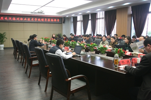 3月7日上午,福州职业技术学院院长林承超率考察团来我院考察。我院院长丁金昌在研发大楼三楼会议室接待了来访的客人,并就学院概况、办学情况、办学特点做了介绍。双方就开放办学、校内外实训基地建设的做法与经验、校企合作主要途径与方式、方法、人才培养模式、课程体系的做法与经验等内容进行了对口交流。随后,客人们参观了学院的校内实训基地。