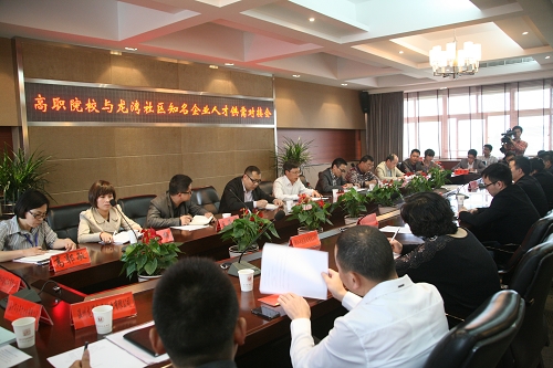 4月17日下午,高职院校与龙湾社区知名企业人才供需对接会在我院行政楼301会议室隆重举行。学院党委副书记夏晓军、招生就业处处长谷智静、副处长金建孟、龙湾区组织部副部长季克霖、状元街道党工委书记林新林,龙湾人事局、民政局、社区办、区农办、新元社区领导,浙江工贸职院、温州科技职院、浙江东方职院3所高职院校就业处代表,龙湾新元社区知名企业代表,以及部分毕业生和在校生代表参加了此次对接会。