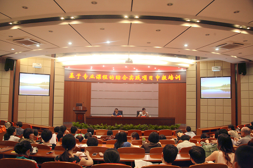 会上,王志梅副院长对《温州职业技术学院关于推进基于专业课程的综合实践项目的实施意见》(温职院教〔2012〕20号)文件进行了详细解读,并向与会老师分析了综合实践项目实施的要点,即要基于专业课程,贯穿融合知识点和技能点,完成点线结合;并针对真实项目或是高仿真度的项目做好教学化设计。同时,她还通过典型案例进行了实施流程分析。