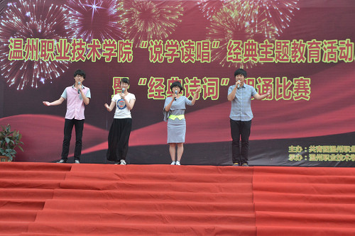 据悉,“说学读唱”经典主题教育活动将陆续开展包括“唱响中国梦”大合唱比赛、“创共青辉煌,展青年风姿”团知识竞答、“美丽温职”校园美景影像作品征集等12项系列活动。