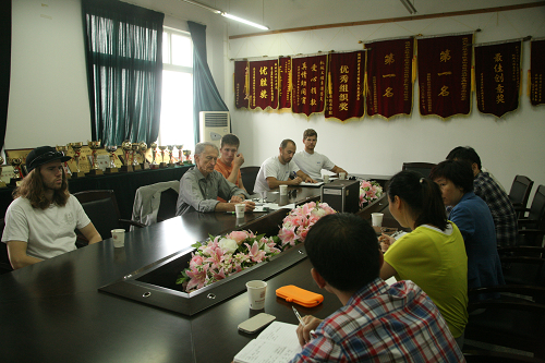 次日,王志梅副院长与来访客人合影留念。Mick先生于3号实训楼410教室给我院机械系(ZJ机制1001)学生讲座;并于6月5日对机械系的教师与学生进行了面对面座谈会。