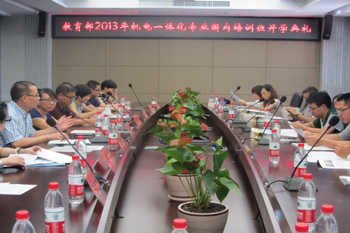 8月1日下午,教育部2013年机电一体化专业国内培训班开学典礼在我院技术研发大楼三楼会议室隆重举行。副院长王志梅、成教学院院长胡守贵以及负责培训班教学的骨干教师出席典礼仪式。仪式由电气电子工程系主任苏绍兴主持。