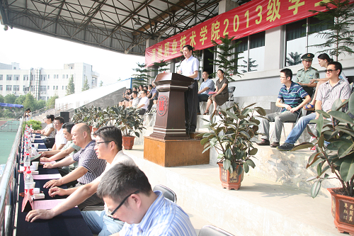 随后,学院教师代表、在校生代表、新生代表、军训部队领导等先后作了发言。