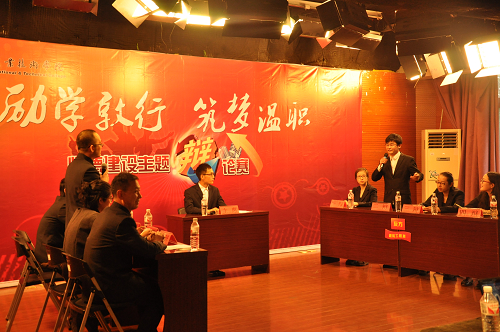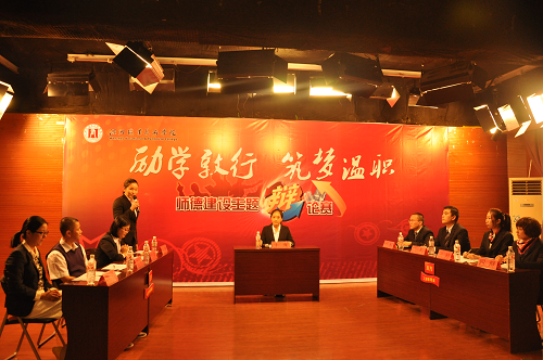 为进一步浓郁师德师风建设活动氛围,我院于10月30日下午在人文系演播厅举行了别开生面的师德建设“论坛”——“励学敦行筑梦温职”师德建设主题辩论赛预赛。本次比赛分四场进行,学院党委书记陈光天到现场观看比赛,比赛邀请了学院党委委员、宣传部部长蔡后界,教务处处长张宝臣,公共教学部副主任王永江,学生处副处长吴冰,教务处副处长金欢阳,团委副书记刘海明担任评委。