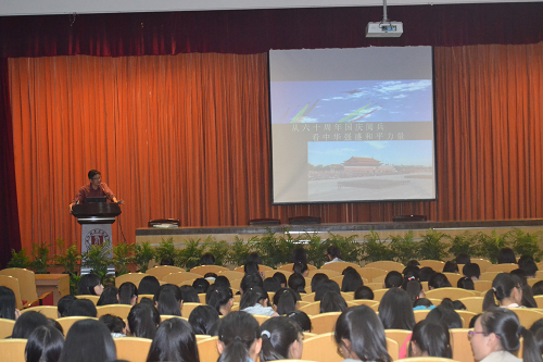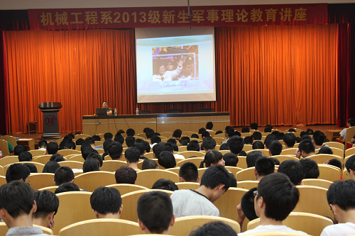 为推进我院新生军训工作全面开展,增强新生国防意识、激发爱国热情。我院在完成2013级新生军事技能训练后,于9月13日至11月5日在树人堂开展了新生军事理论系列讲座。
