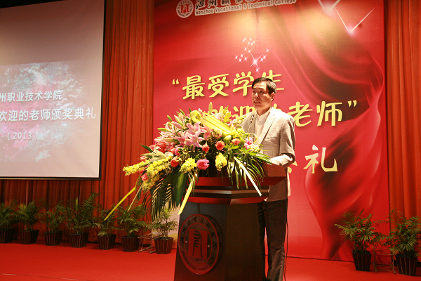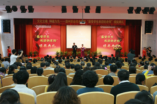 为了更好的推进学院师德师风建设,激励全体教师在本职岗位上创先争优,11月6日下午,温州职业技术学院首届“最受学生欢迎的老师”颁奖典礼在明德楼树人堂隆重举行。学院党政领导班子及全体教职工参加了本次颁奖典礼。