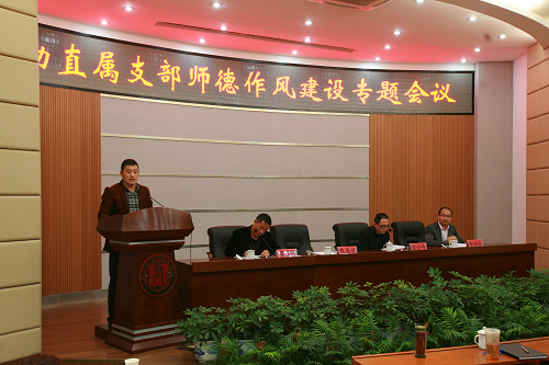 为贯彻落实学院有关师德师风建设会议精神, 11月13日下午,后勤直属支部在正德楼罗山厅召开师德作风建设专题会议。学院党委书记陈光天出席会议,院党委委员、副院长兰玉景出席会议并作重要讲话,后勤支部全体党员、在编职工及聘用骨干员工参加会议,会议由后勤直属支部委员蒋昌陛主持。