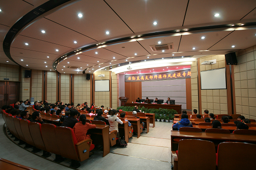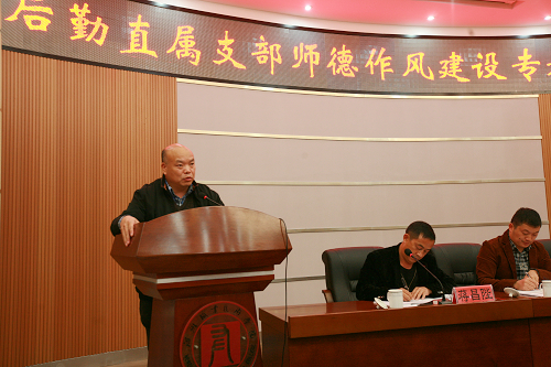 兰玉景副院长在会上作了重要讲话,他指出后勤作为学院的行政部门,后勤人在学院工作中也同样为人师——学生生活中的老师。兰院长对后勤工作给予了充分的肯定,分别对做先进事迹报告的四名同志作了高度的评价。后勤人无私奉献的精神就是一种高尚的典范,是师德作风建设中重要的组成部分。兰院最后强调:后勤要提高整体人员素质,要高标准、严要求,提高美的鉴赏能力、创造美的能力与水平。在工作中要注意工作方法,党员干部要以身作则、率先垂范,保持无私奉献的精神,在“师德作风建设”活动中带领广大后勤人员为全院做好表率。