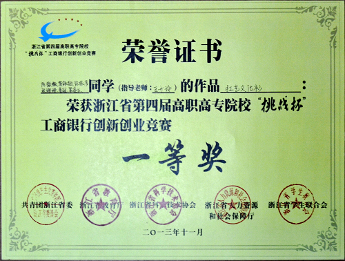 11月16日至18日,由共青团浙江省委员会、浙江省教育厅、浙江省科学技术协会、浙江省人力资源和社会保障厅、浙江省学生联合会共同发起主办的浙江省第四届高职高专院校“挑战杯”创新创业竞赛在杭举行。我院参赛学生发挥出色,十个参赛作品七个获奖,其中,荣获1个一等奖、2个二等奖、4个三等奖,学院荣获“最佳进步奖”。