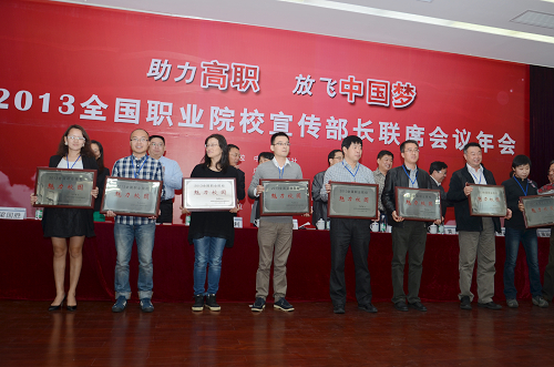 年会期间,为“2013全国职业院校魅力校园”获奖院校举行了授牌仪式。我院做为获奖单位现场接受了“2013全国职业院校魅力校园”奖牌,这从一个方面展现了学院在建设高职教育形态校园、深化内涵建设和全面推进校园文化建设工作中的成效。