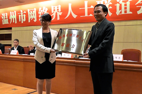 11月18日,在温州市人民大会堂隆重召开温州市网络界人士联谊会成立大会。中央统战部六局副局长张明,省委统战部常务副部长徐宇宁,党外知识分子处处长林金德,温州市委副书记马晓晖、市委常委、统战部部长陈作荣等温州市四套班子领导出席会议。省委统战部常务副部长徐宇宁、温州市委副书记马晓晖在会上作了重要讲话,中央统战部副部长陈喜庆为温州网联会的成立发来贺信。成立大会上,我院副院长王志梅教授当选为市网络界人士联谊会首任会长,并现场进行授牌仪式。