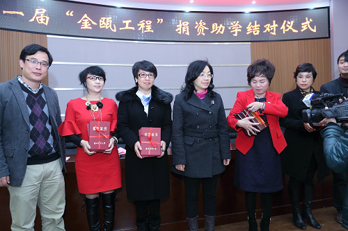 “金瓯工程”是鹿城区妇联、鹿城区女企业家协会为解决贫困女大学生的学习、生活而以结对形式进行的扶贫助学工程。到今年已连续举办11届,共资助了782名贫困大学生,资助金额达100多万。
