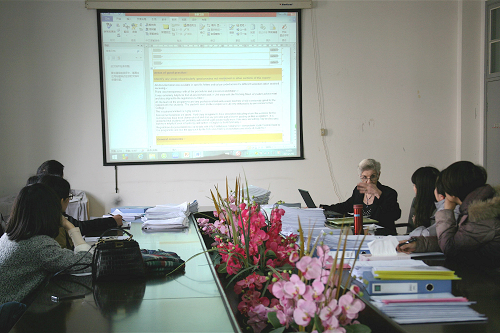 当日下午15:00左右,Dryland女士结束了课业评审,随即召开了课业评审反馈会议。在反馈会上,Dryland女士对照英方规定条目,非常严谨地分课程分课业对BTEC课程的课业设计、学生课业完成、教师课业批改等情况一一进行了点评。分科点评之后,Dryland女士充分肯定了我院中英合作项目BTEC的开展情况,她赞扬说:“我对任课老师们的工作很满意,你们的课业设计非常合理,课业批改认真负责,课业反馈及时详细”。同时,Dryland女士还表示中英合作项目的内审小组的内审计划安排合理、内审资料准备充分、内审制定严格、谨慎,为她的外审工作带来了很大的便利。她本人对我院电子商务中英合作项目中心的工作表示非常满意。此外,Dryland女士还对今后的BTEC课程课业设计与批改提出了一些建设性的建议。参与座谈的BTEC任课教师纷纷就课业设计与批改中的一些问题向Dryland女士请教。