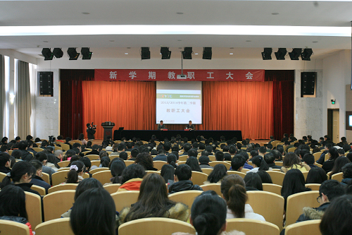 2月17日上午,学院在明德楼树人堂召开新学期教职工大会。陈光天书记主持大会,丁金昌院长在会上作新学期工作报告。学院领导班子和全体教职工参加了本次大会。