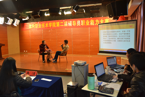 为进一步提高辅导员业务技能,促进辅导员相互交流学习,推动辅导员职业化、专业化水平再上台阶,学院于2月21日在人文系演播厅举办了第二届辅导员职业能力大赛决赛,院党委书记陈光天观看了比赛,副院长王向红与相关部门领导莅临竞赛现场指导并担任评委。