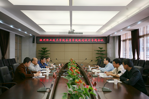 4月15日下午,乐清教育园区相关领导来到我院,在研发大楼三楼会议室召开温州职业技术学院乐清学院规划设计专题会议。讨论有关规划布局、建设方案实施细节、指标研究等方面内容。我院副院长兰玉景出席了会议,学院办公室、教务处、后勤基建处负责人参加了会议。
