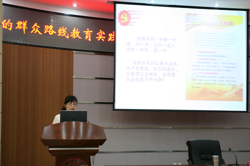5月21日下午,学院于正德楼罗山厅召开党的群众路线教育实践活动专题报告会(四)——理想信念暨纪律教育。学院领导,中层干部及各党总支委员参加了会议。本次报告会由院党委委员、组织部长徐利群主持。报告会主讲人:公共教学部教师、副教授郑晓郁。