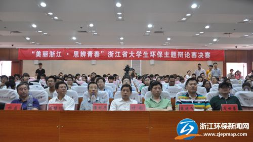 浙江环保新闻网6月8日讯(实习记者 单世高)打造美丽浙江,共筑和谐中国梦。经过两个半月的赛程预热,今天,2014年“美丽浙江?思辨青春”浙江省大学生环保主题辩论赛决赛在浙江理工大学行政楼2楼报告厅开赛。本次比赛由省委宣传部、省文明办、省环保厅、团省委、省教育厅、省学联共同主办,由浙江理工大学、浙江建设职业技术学院共同承办。