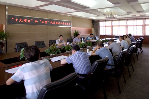 6月11日上午,学院在正德楼三楼会议室召开2014年“十大项目”和“五型”机关创建工作推进会。党委书记陈光天、党委副书记夏晓军出席会议,各相关职能部门负责人参加会议。会议由陈光天书记主持。