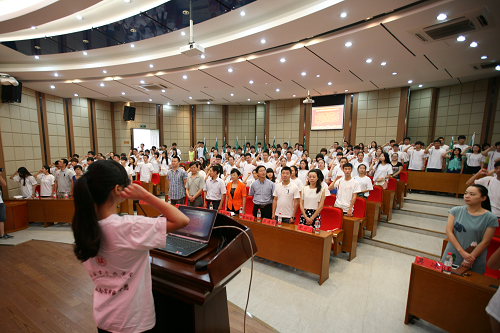 仪式现场,与会领导还分别为各系专业实践总队、社区服务实践团队、支教团队、调研团队等实践团队授旗。出征仪式在全体实践队员嘹亮的《团歌》声中落下帷幕。