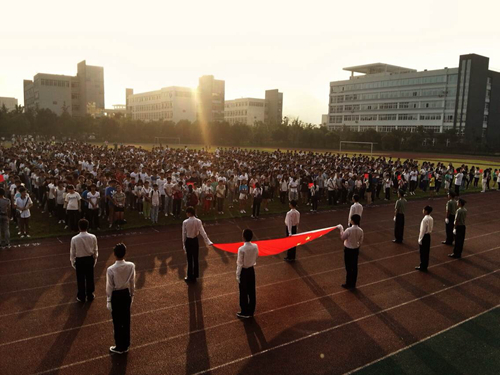 为庆祝中华人民共和国成立65周年,激发师生的爱国热情和民族自豪感,培育和践行社会主义核心价值观,引导师生同心共圆中国梦。9月29日早晨,我院在田径场隆重举行了庆祝中华人民共和国成立65周年国庆升旗仪式,院党委书记陈光天、副院长王向红及学生处、团委全体工作人员、各系党总支书记、辅导员、全院学生党员、入党积极分子、学生干部等2500余人参加了升旗仪式。