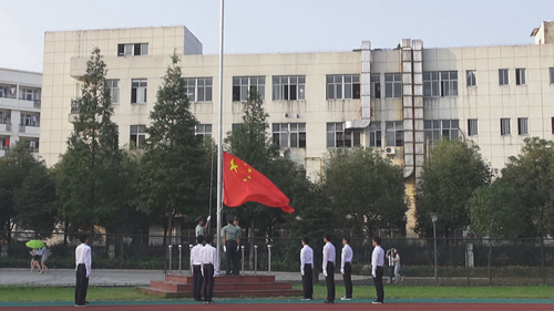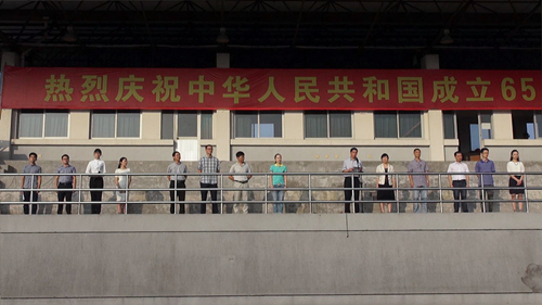 王向红副院长宣布庆祝中华人民共和国成立65周年国庆升旗仪式开始,英姿飒爽的国旗护卫队迈着铿锵有力的步伐走向升旗台,鲜艳的五星红旗伴随着雄壮的国歌声冉冉升起、迎风飘扬。大家庄严肃立,注视着升起的国旗,表达对祖国的深切热爱和美好祝福。